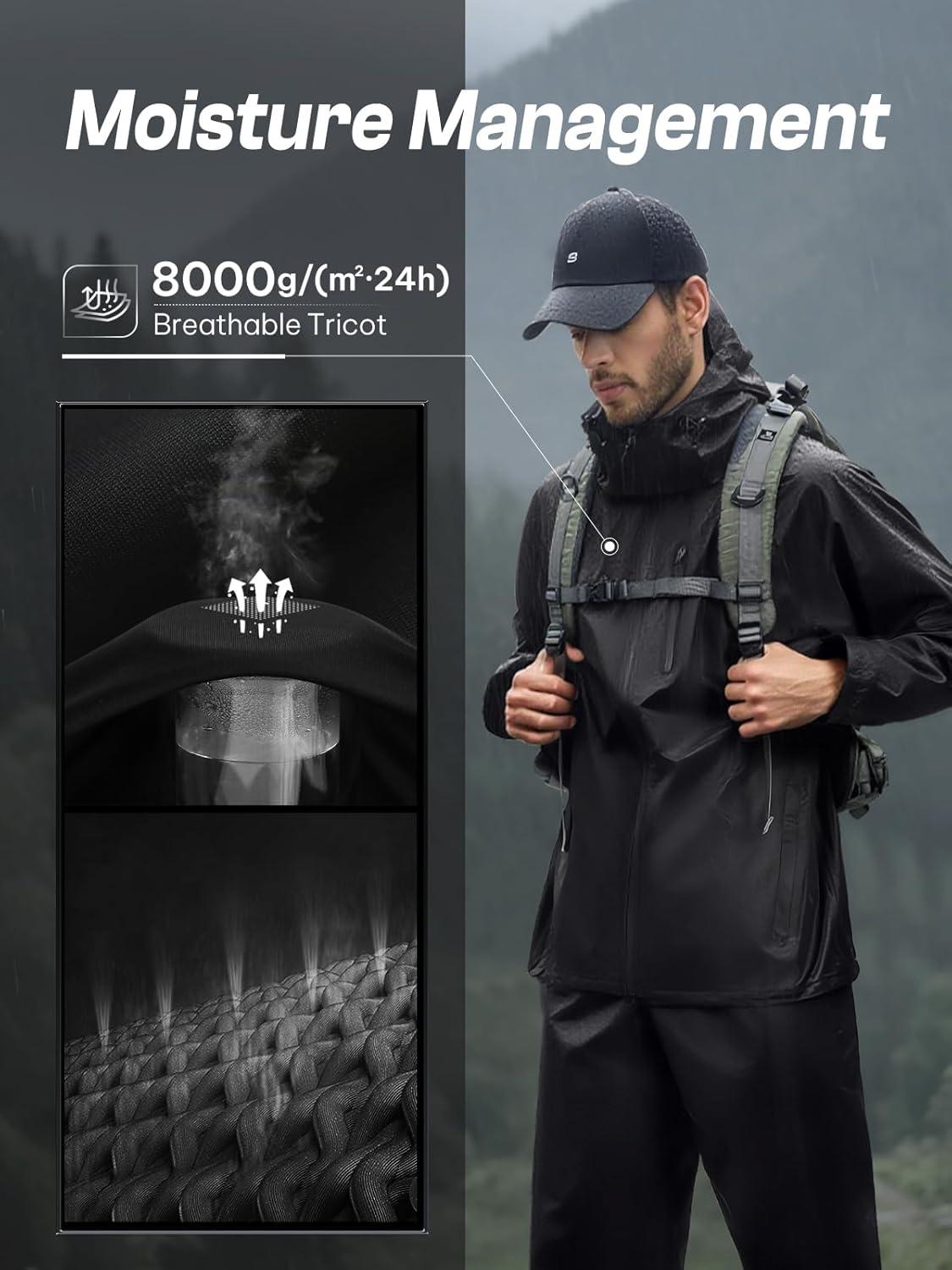 imageSaphiRose Mens Waterproof Rain Suit 2pcsset Packable Rain Gear for Golf Motorcycle FishingBlack